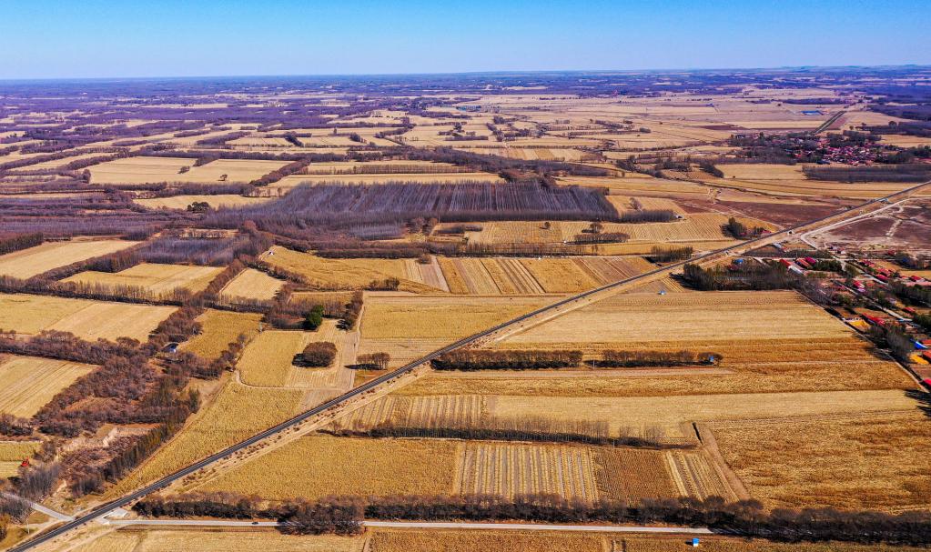 10月18日,這是通遼市奈曼旗新鎮正在收獲的玉米地。(無(wú)人機照片 新華社記者 連振 攝)