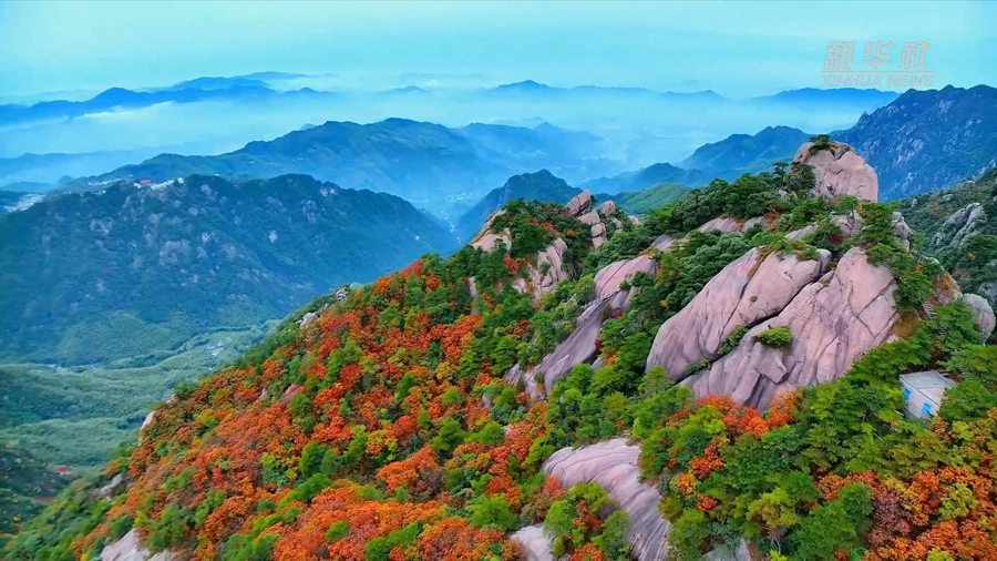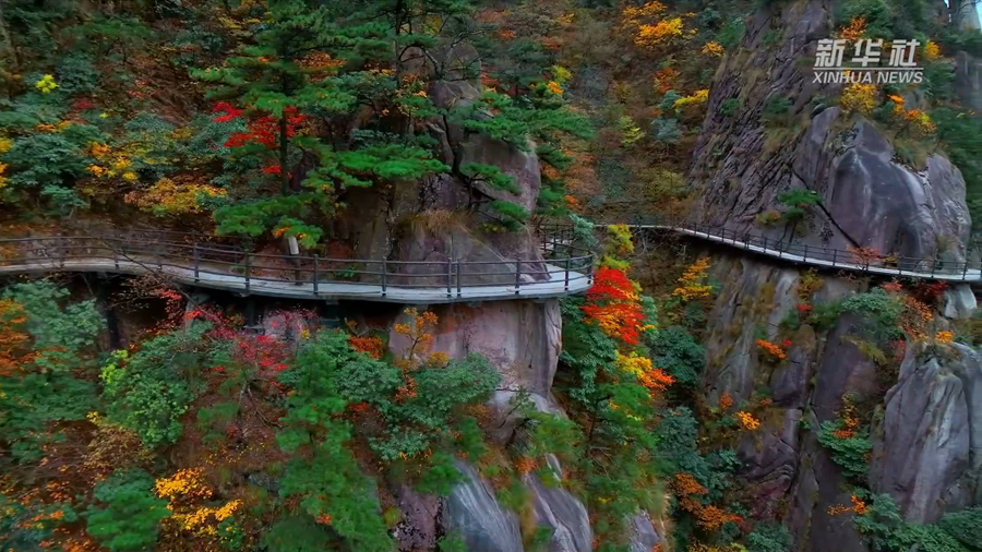 十月末,位于安徽省池州市的九華山風(fēng)景區,秋意正濃,秋色蔓延,如同一幅濃墨重彩的油畫(huà)。九華山高海拔的地形條件和多樣的植物群落組合,形成了這樣的自然風(fēng)光。