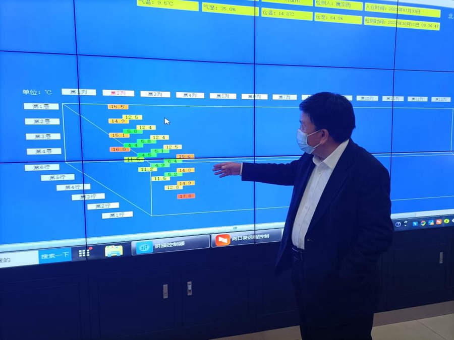 記者在糧情監控室看到,工作人員只需輕點(diǎn)鼠標,智能系統就能調取糧倉數據,保管員不用再頻繁進(jìn)出倉庫。