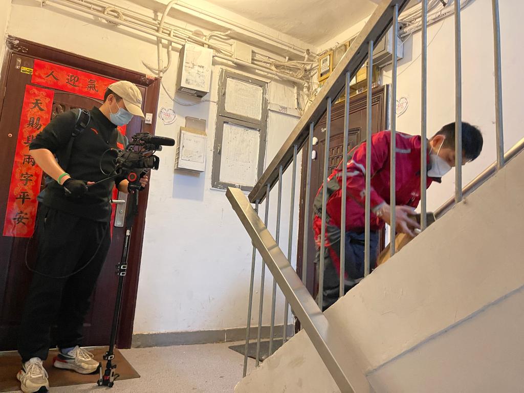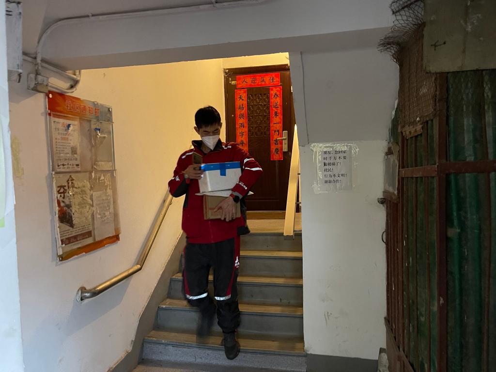 一步兩階梯,上樓如平地,這是拿著(zhù)幾件小件快遞上樓的欒玉帥;一口氣上六樓,中間不停歇,這是手拿肩抗米面油的欒玉帥。追了小哥一路,被小哥甩了一路,記者正懊惱時(shí),一位街坊的“玩笑話(huà)”讓記者印象深刻:“他在樓下按完門(mén)禁我住三樓就能開(kāi)門(mén),這時(shí)他剛好到門(mén)口?!?/p>