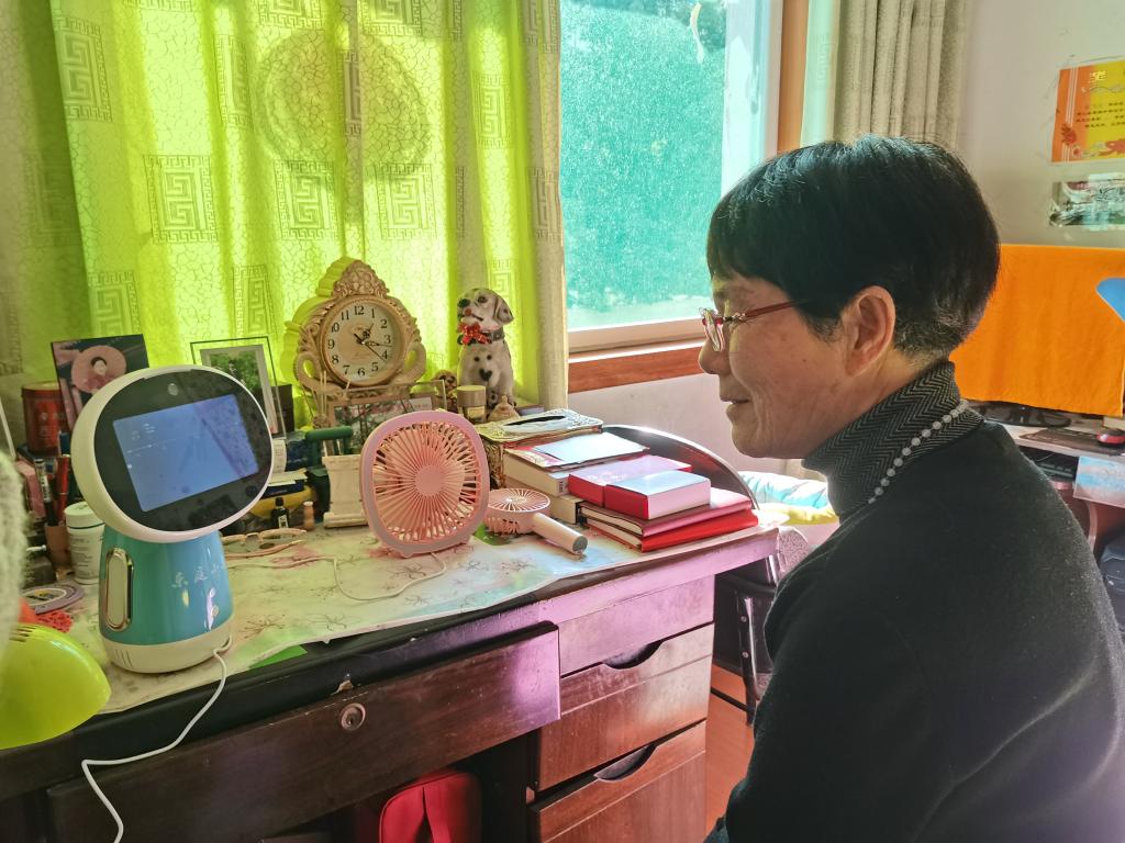 胡清蘭和家中的智能機器人溝通對話(huà)。新華社記者 汪海月 攝