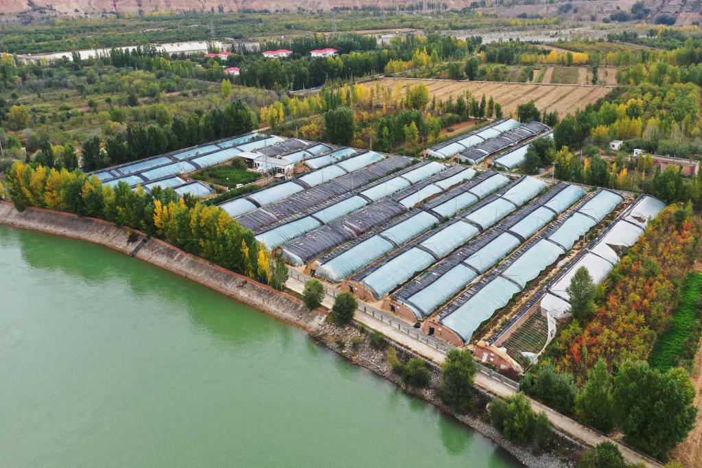 位于青海省黃南藏族自治州尖扎縣康楊鎮的溫室大棚(無(wú)人機照片)。新華社記者 陳杰 攝