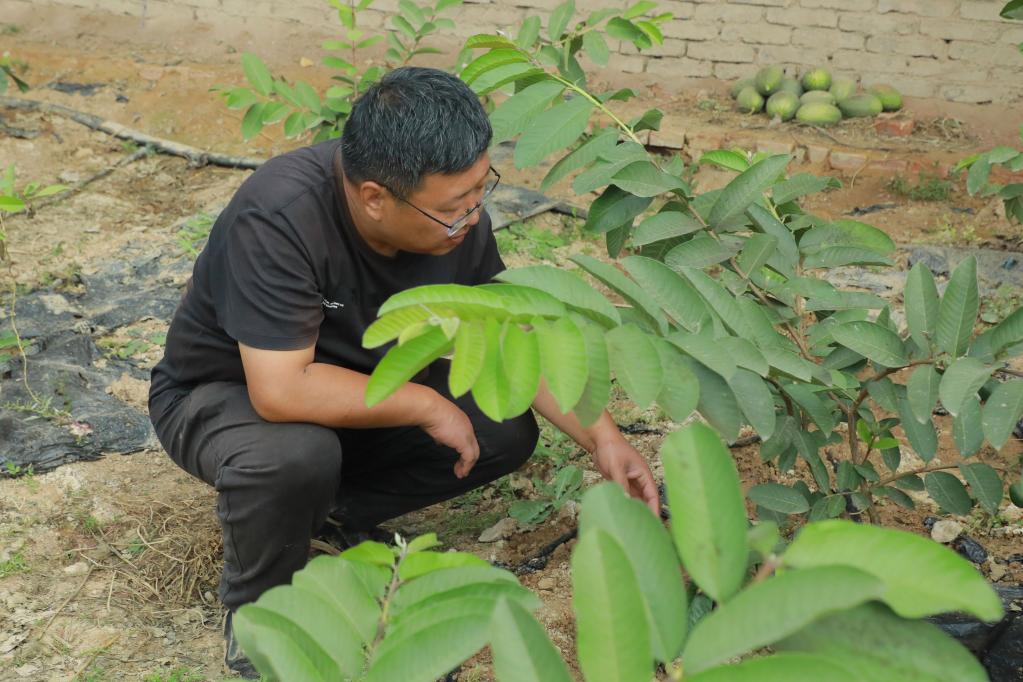 白恒瑋在為番石榴疏果,這樣可以使留下的果實(shí)更好地生長(cháng)。新華社記者 王艷 攝