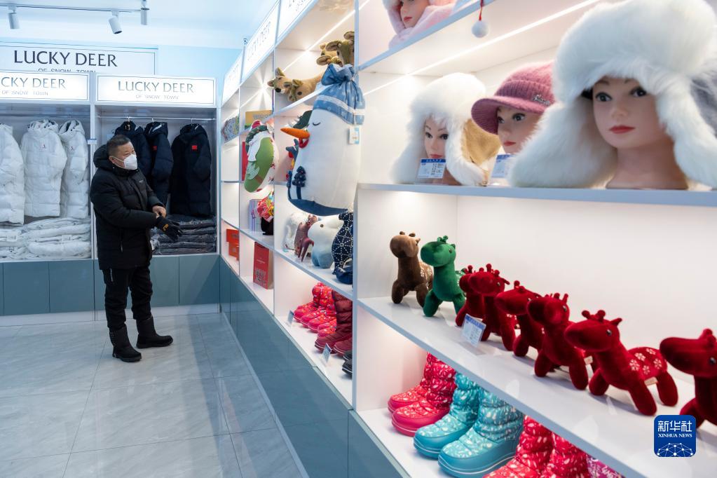 12月14日,游客在雪鄉景區的一個(gè)旅游紀念品商店內選購。新華社記者 謝劍飛 攝