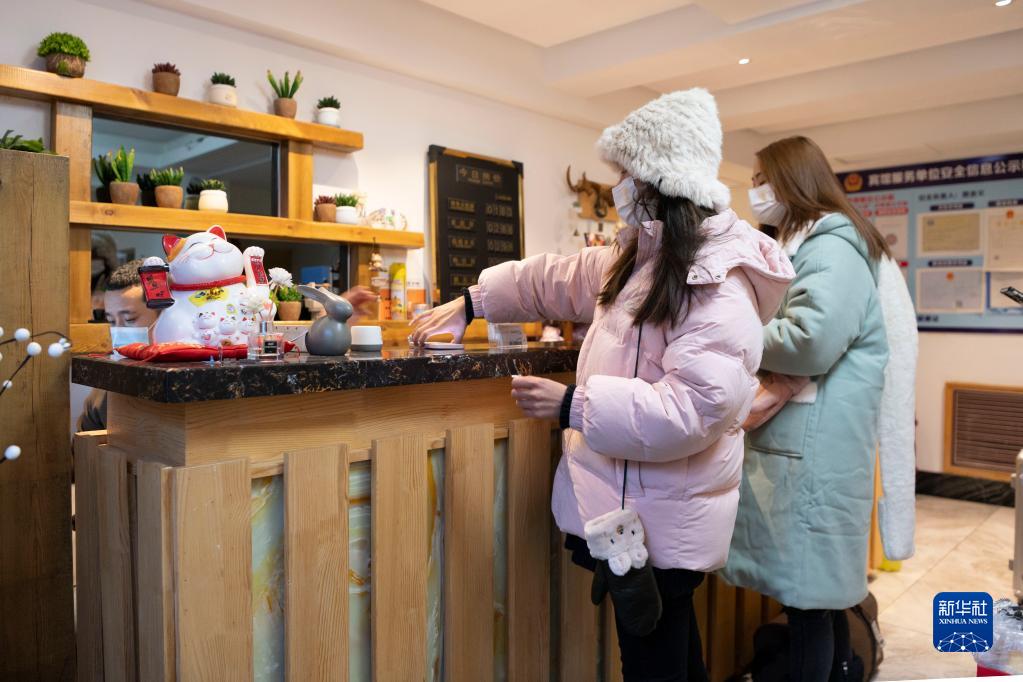 12月14日,游客在雪鄉景區的一家民宿辦理入住手續。新華社記者 謝劍飛 攝