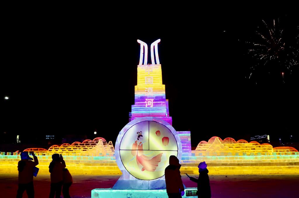 游客在漠河市欣賞冰雕作品。新華社記者徐凱鑫 攝