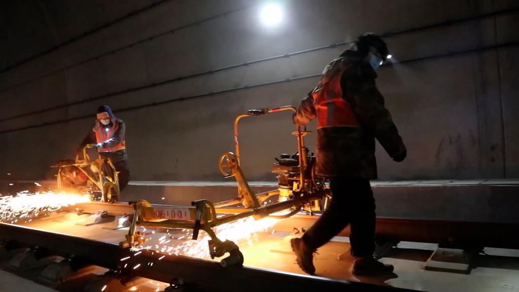 凌晨時(shí)分,鐵路工人推著(zhù)打磨機在鋼軌上勻速移動(dòng),打磨時(shí)閃出的火花在寒氣襲人的深夜中格外溫暖。這樣的“深夜作戰”,已成為這群“鋼軌美容師”的常態(tài)。