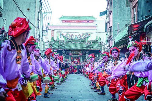 兔年正月初一,廣東汕尾陸豐市甲子鎮舉辦甲子英歌巡游活動(dòng)。(陳鏗銓、蔡華鎮攝)