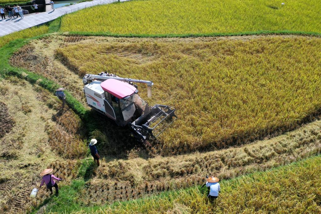 貴州余慶縣大烏江鎮糧農陳剛的水稻基地2022年秋收場(chǎng)景。(受訪(fǎng)者供圖)