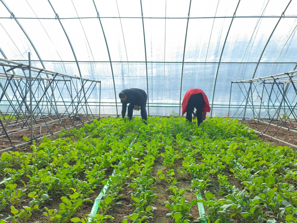 松原市寧江區伯都鄉楊家村村民在溫室大棚內務(wù)工。新華社記者 薛欽峰 攝