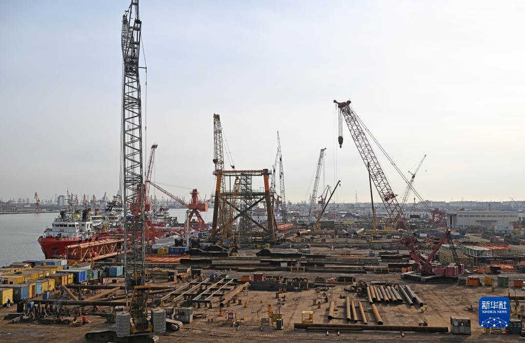 位于天津濱海新區的海油工程塘沽建造場(chǎng)地一派繁忙景象(2月2日攝)。新華社記者 趙子碩 攝