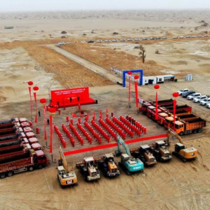 2月10日,位于塔克拉瑪干沙漠腹地的我國最大超深油田——富滿(mǎn)油田500萬(wàn)噸產(chǎn)能建設工程開(kāi)工。(受訪(fǎng)單位供圖)