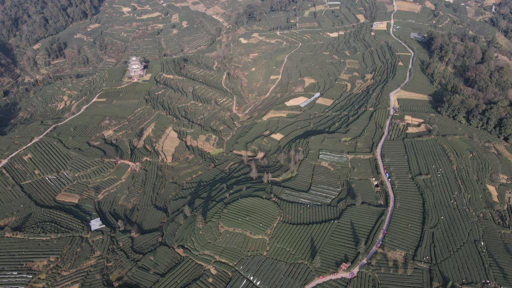 這是位于雅安市名山區紅星鎮的萬(wàn)畝觀(guān)光生態(tài)茶園(無(wú)人機照片)。新華社記者 胥冰潔 攝