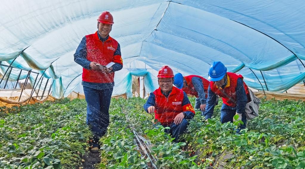 圖為工作人員正在指導農民引水灌溉。新華社記者劉彤 攝