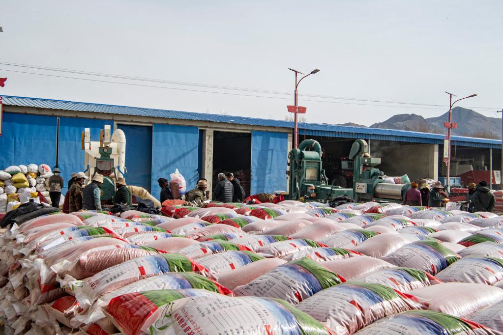 在西藏日喀則市江孜縣紫金鄉努堆村的農機農民專(zhuān)業(yè)合作社內,兩臺青稞種谷物精選機正開(kāi)足馬力,給新收獲的青稞良種過(guò)篩、除雜、包衣、裝袋,50公斤一袋的青稞良種已碼滿(mǎn)大半個(gè)院子。
