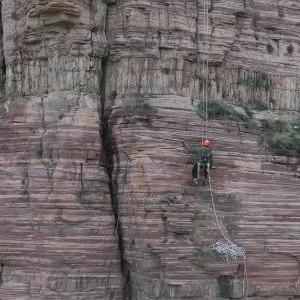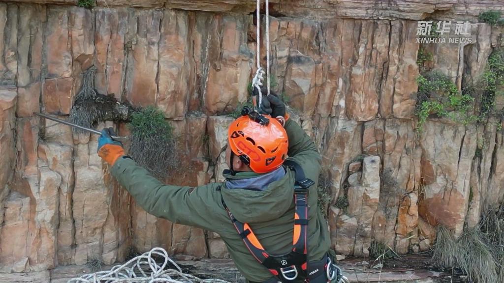 每次清危,都是一次真正意義上的攀巖運動(dòng),他們需要先用鐮刀扒開(kāi)雜草,扛著(zhù)繩索和沉重的裝備,艱難地從陡峭蜿蜒的山坡登上山頂,較遠的高崖光是爬上山頂就需要兩個(gè)多小時(shí)。登頂后,再從幾百米高的懸崖上把人吊放下來(lái),懸在毫無(wú)依靠的半空中,然后在巖壁上攀爬、挪移,排除松動(dòng)的石塊。