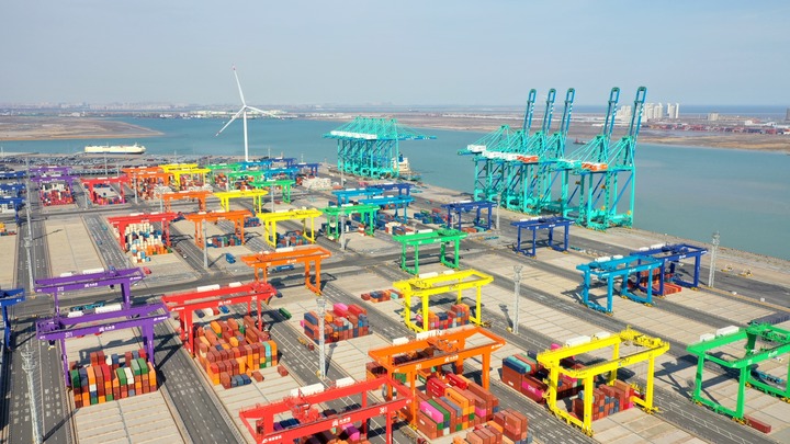 天津港全物聯(lián)網(wǎng)集裝箱碼頭全景。新華社記者 趙子碩 攝