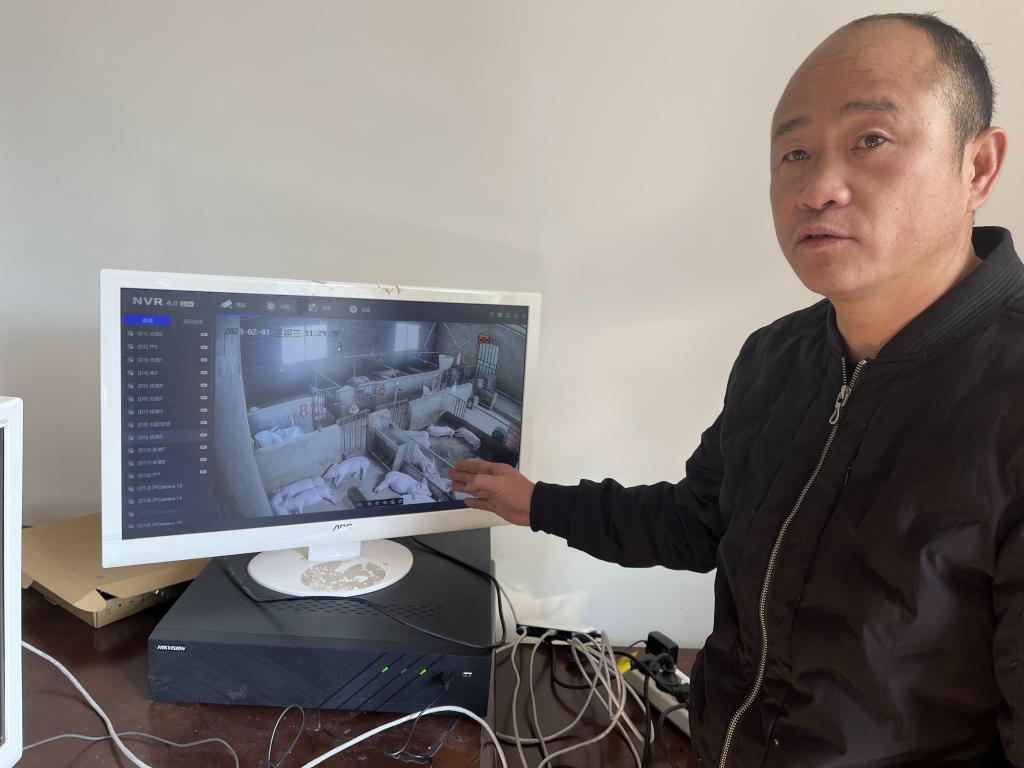 圖為2023年2月1日拍攝的何西康通過(guò)線(xiàn)上視頻監控平臺查看豬崽生長(cháng)情況。新華社記者李驚亞 攝