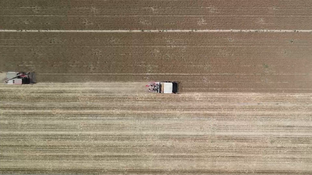 從播到收,全程機械化,還有農業(yè)聯(lián)合社提供服務(wù),旱能澆,澇能排,1500畝地用噴灌一周就能澆完,成本20元左右,比傳統澆灌既節省人力又降低成本。