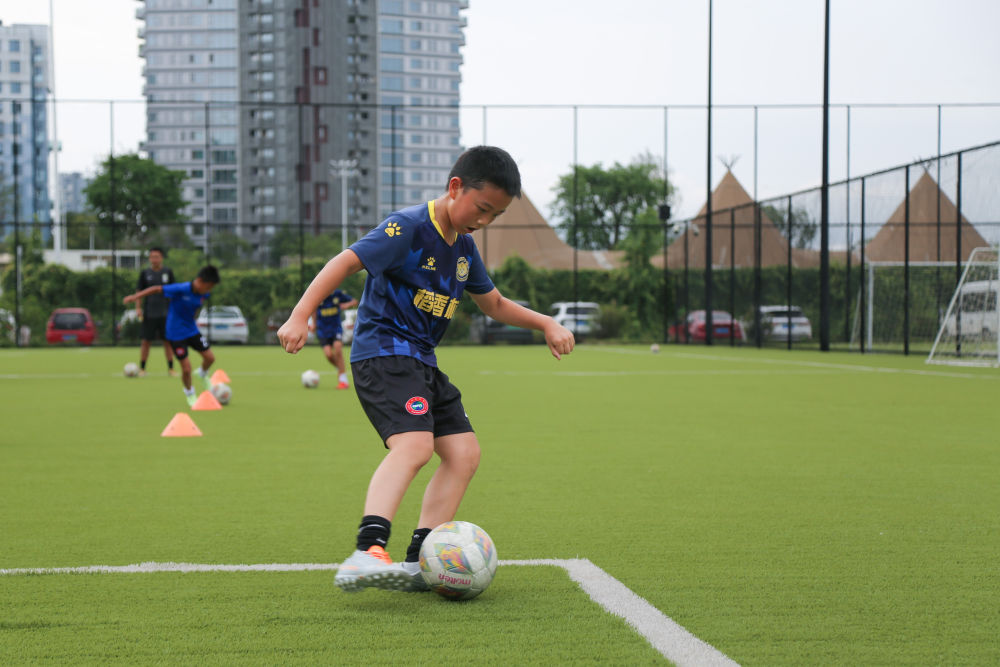 7月21日,在四川天府新區CDT運動(dòng)公園內,小朋友參加暑期少兒足球訓練。新華社記者 楊進(jìn) 攝