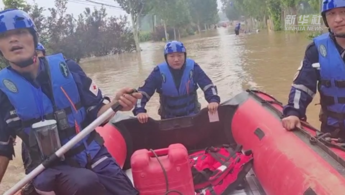 到達涿州后,在當地應急管理局的帶領(lǐng)下,救援隊在高官莊鎮開(kāi)展救援,乘坐汽艇,深入受災區,解救受困群眾。