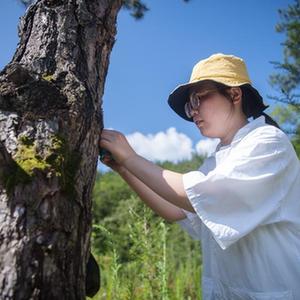 在神農架林區松柏林場(chǎng),森林病蟲(chóng)害防治工程師黃世翠無(wú)暇欣賞風(fēng)光。趁著(zhù)天氣合適,她和同事在松樹(shù)林里釋放花絨寄甲成蟲(chóng)及卵卡。