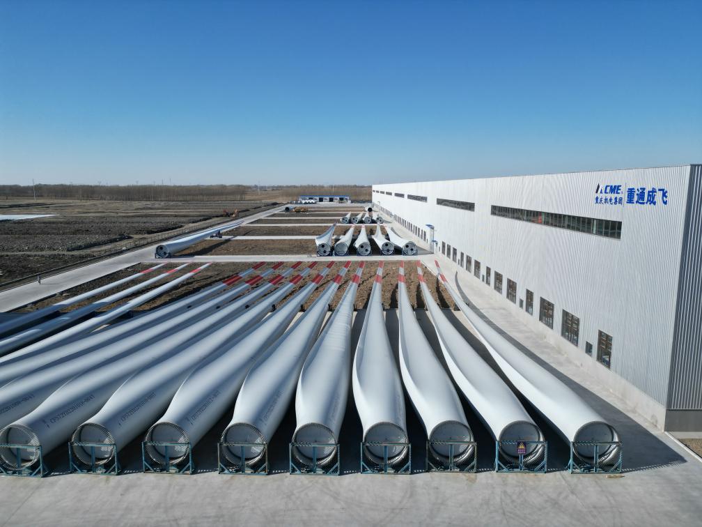 吉林重通成飛新材料股份公司生產(chǎn)的風(fēng)機葉片。新華社記者姜明明 攝