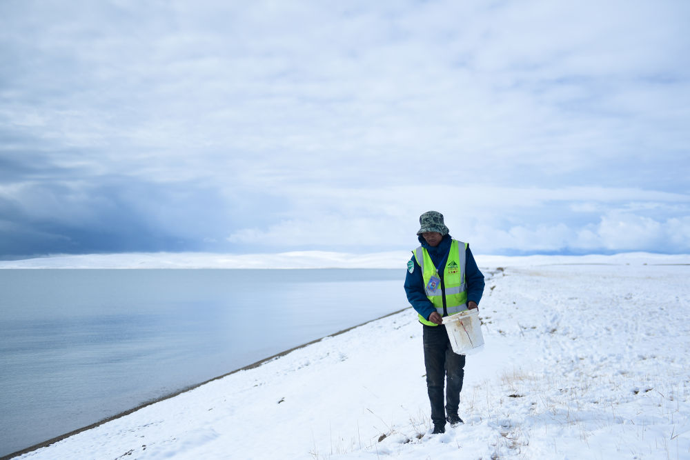 自三江源國家公園體制試點(diǎn)開(kāi)始以來(lái),更登堅措和許多牧民一樣,放下牧鞭,成了一名生態(tài)管護員。如今,他每天的主要工作是撿拾垃圾、巡護湖泊和草原、保護野生動(dòng)物?!澳苡米约旱牧α孔尲覉@變得越來(lái)越美,很有成就感!”