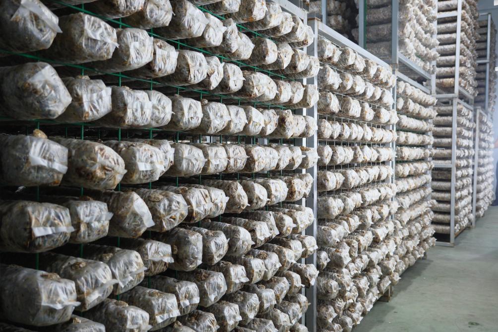 9月6日,德祥實(shí)業(yè)有限公司生產(chǎn)加工基地內,菌棒被培育在恒溫培養室。新華社記者 趙鑫虎 攝