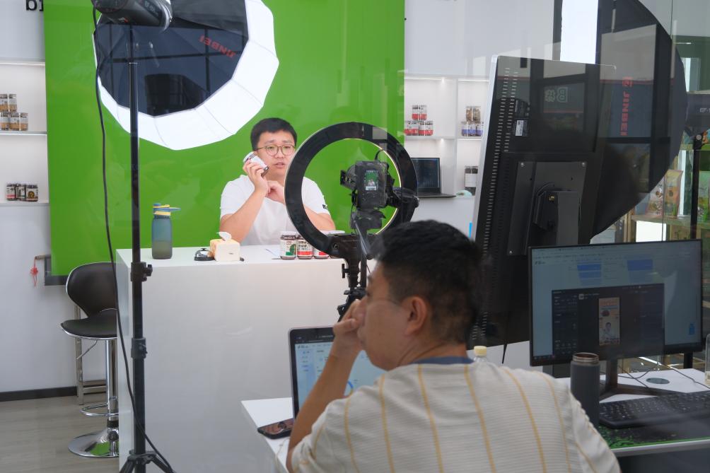 9月6日,銷(xiāo)售人員正在德祥實(shí)業(yè)有限公司內進(jìn)行電商直播。新華社記者 趙鑫虎 攝