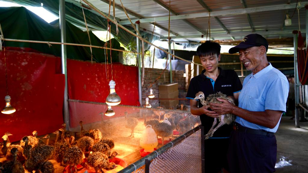 “吳錦彪的產(chǎn)業(yè)做大后,還帶動(dòng)當地40余戶(hù)村民一起養鴕鳥(niǎo),并在技術(shù)、銷(xiāo)售渠道等方面提供支持?!鼻f口鎮大陂村駐村干部鄭小華說(shuō),村民親切地稱(chēng)吳錦彪為“鴕鳥(niǎo)司令”。