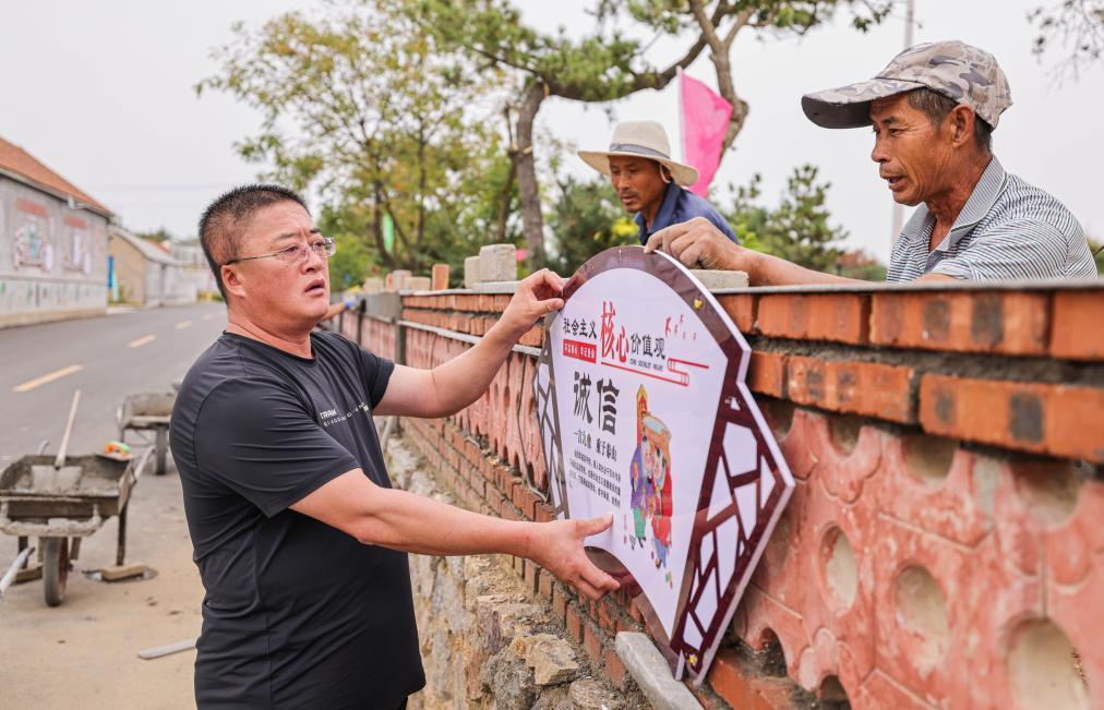 村黨支部書(shū)記張志強和村民一起勞動(dòng)。新華社發(fā) 李信君攝