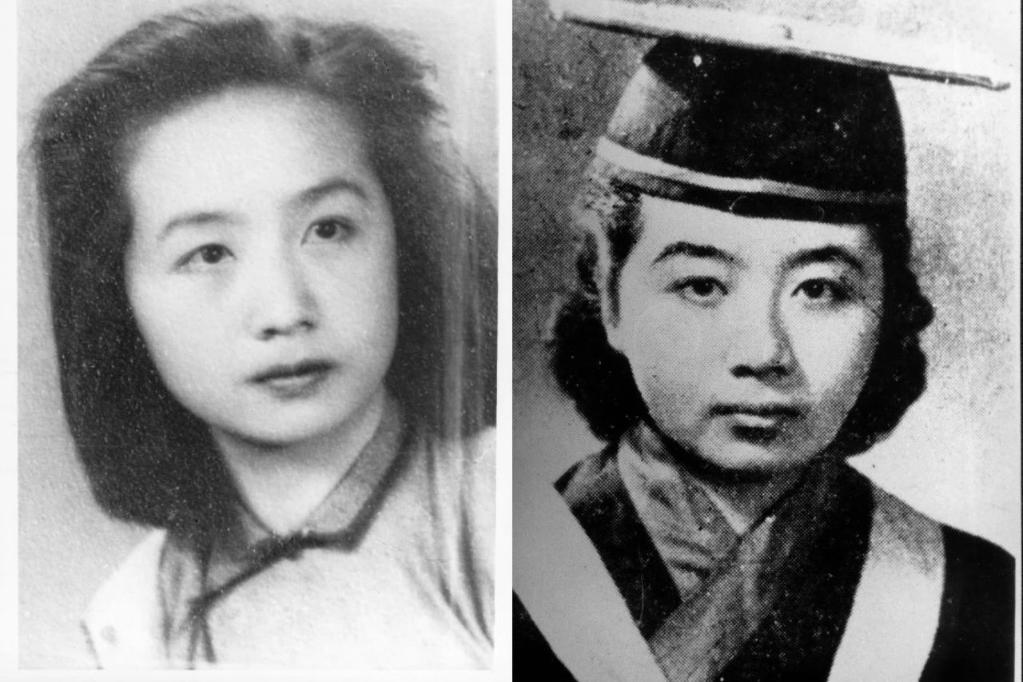 1941年高中畢業(yè)前的葉嘉瑩(左)。1945年大學(xué)畢業(yè)獲學(xué)士學(xué)位的葉嘉瑩(右)。