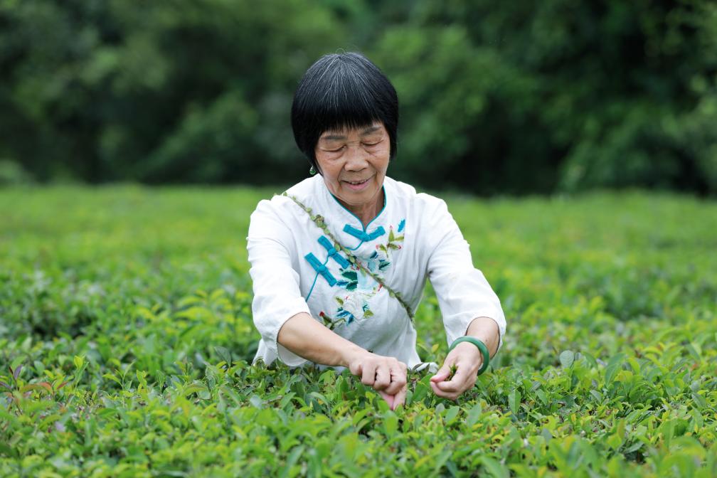 韋潔群在茶園采茶。圖片由受訪(fǎng)者提供