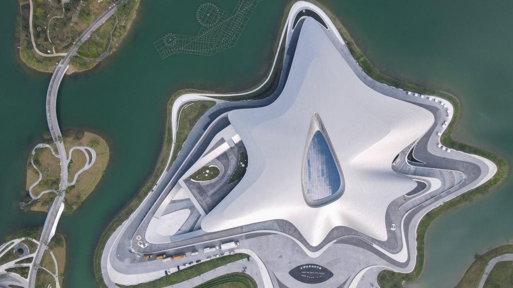 圖為10月14日拍攝的成都科幻館(無(wú)人機照片)。新華社記者 胥冰潔 攝