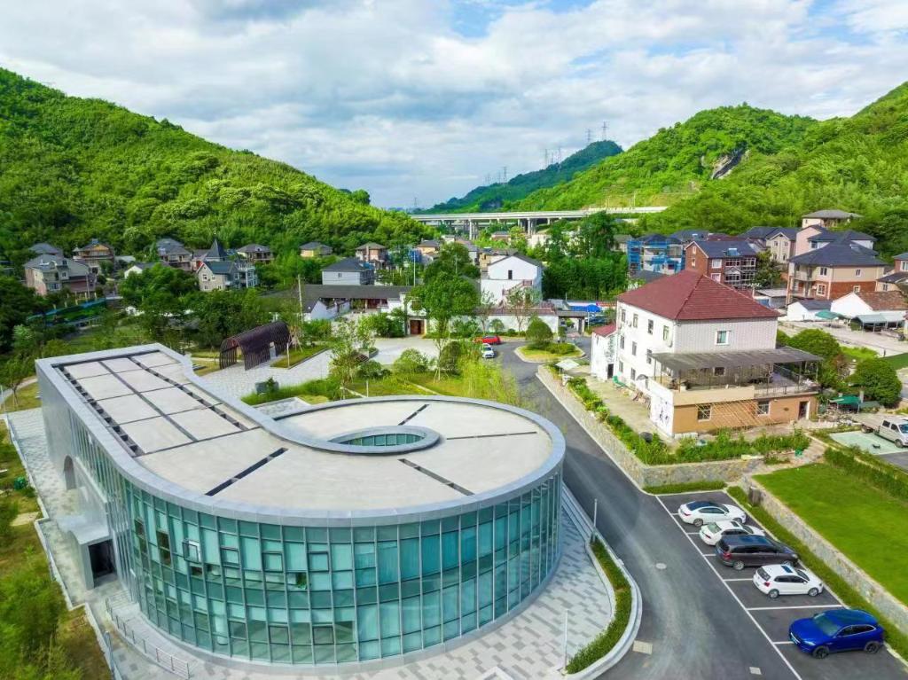 圖為紫荊村村容,近處為形如音符的中泰竹笛展示館。中泰街道辦事處供圖