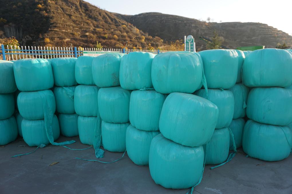 綠豐草產(chǎn)業(yè)合作社內的飼料包。新華社記者 賈釗 攝