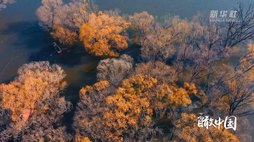 初冬時(shí)節,河北省石家莊市贊皇縣的平泉湖靜靜地安臥于群山環(huán)抱之中,舉目望去遠山如黛,澄澈碧藍的湖水煙波浩渺,山水相映??每昧鴺?shù)婀娜多姿,映著(zhù)清澈的湖水,似美人照鏡,明艷動(dòng)人,美不勝收。