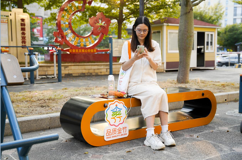 廣州增城區荔城街金竹社區的智慧座椅。(金竹社區供圖)