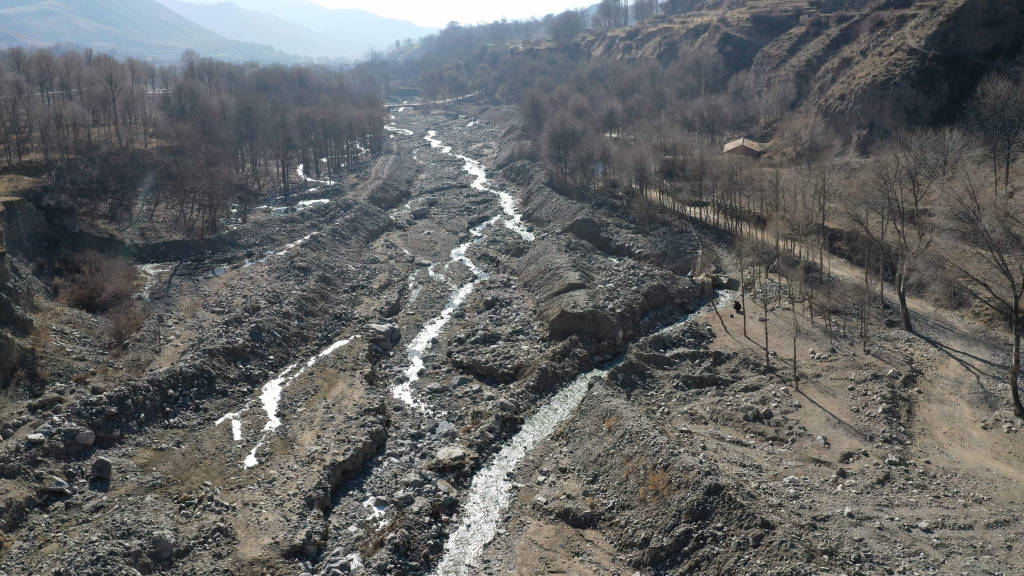 被大范圍挖開(kāi)的尕讓河河道。新華社記者 李占軼攝
