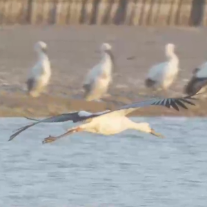 眼下,伴隨著(zhù)大量候鳥(niǎo)南遷,2022年放飛的三只東方白鸛陸續飛回,在天津市濱海新區的灘涂濕地停留補給。