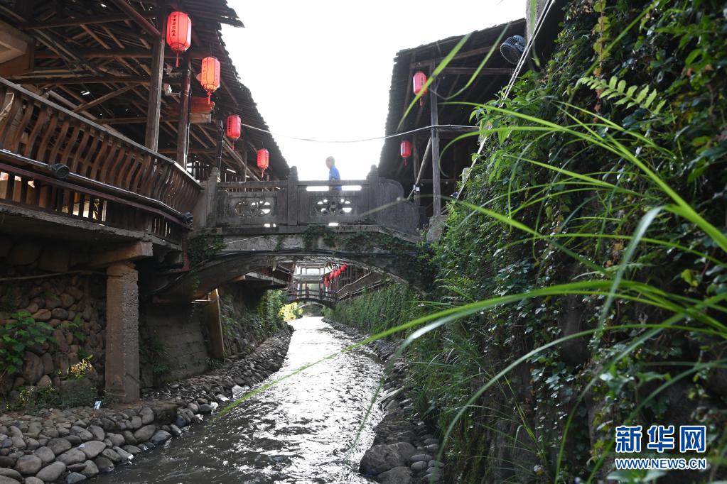 8月18日,村民從下梅村當溪的古石橋上走過(guò)。