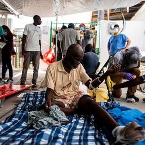 8月22日,人們在海地萊凱的一所醫院接受治療。