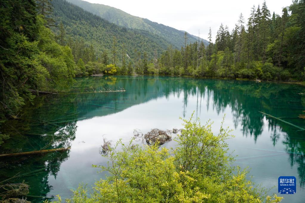 這是九寨溝神仙池景區內的“青龍?!保?月23日攝)。