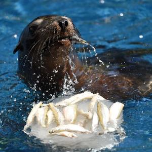 8月26日,一只海獅在意大利羅馬動(dòng)物園享用冰凍食物。