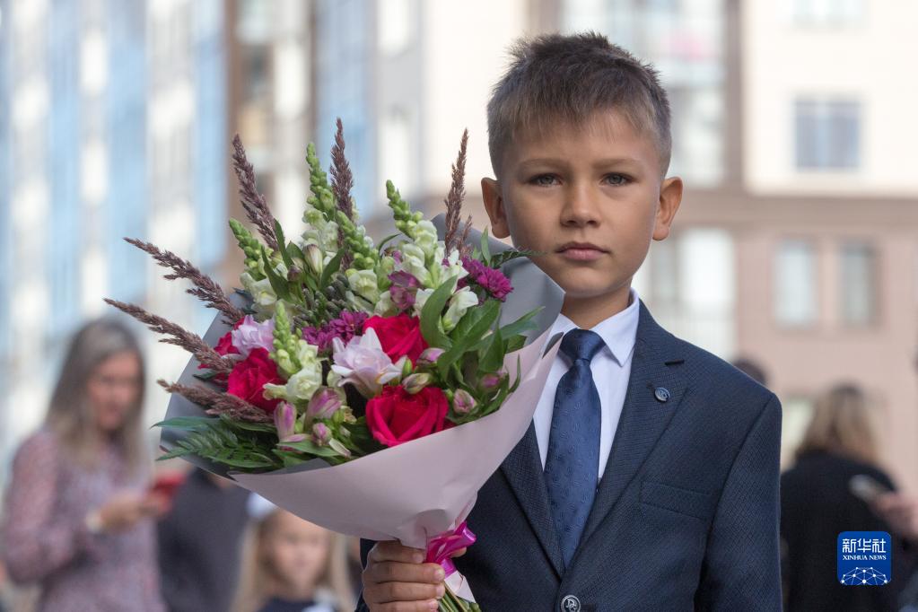 9月1日,一名男孩在俄羅斯圣彼得堡參加學(xué)校的開(kāi)學(xué)日活動(dòng)。