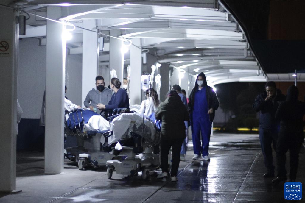9月7日,在墨西哥首都墨西哥城,地震發(fā)生后一家醫院的工作人員將病人轉移到室外。