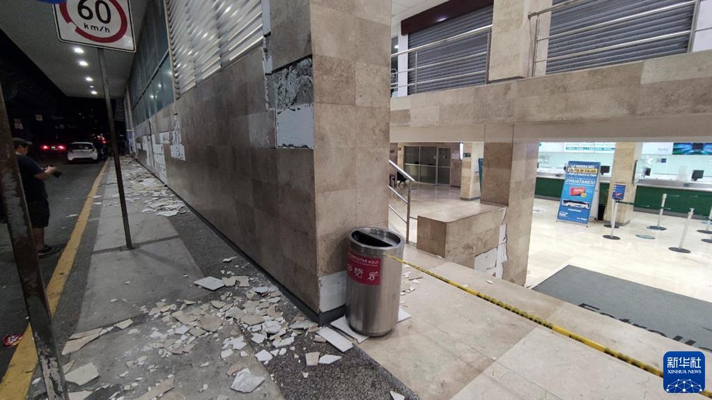 9月7日,在墨西哥格雷羅州阿卡普爾科,一處建筑物在地震中受損。