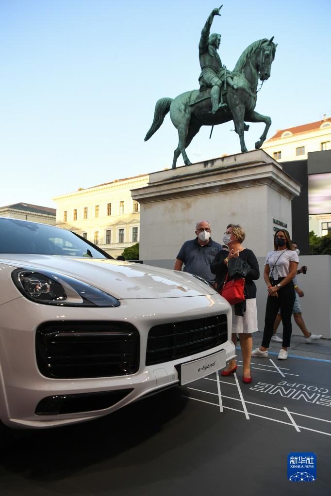 9月8日,人們在德國慕尼黑國際車(chē)展保時(shí)捷汽車(chē)戶(hù)外展區參觀(guān)。