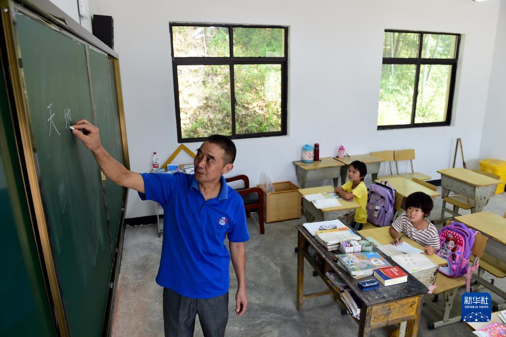 在菥荻教學(xué)點(diǎn),許新民給學(xué)生們上課(9月1日攝)。